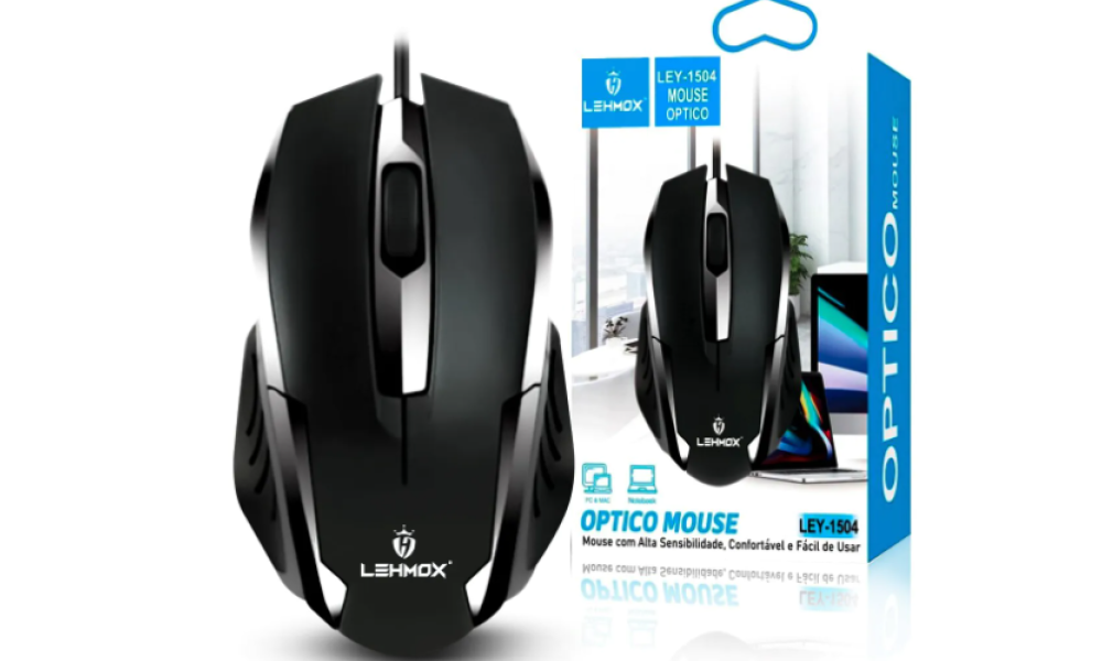 Mouse Optico Com Fio 3.0 USB 1600 DPI Com fio de 1.5m LEY-1504 LEHMOX