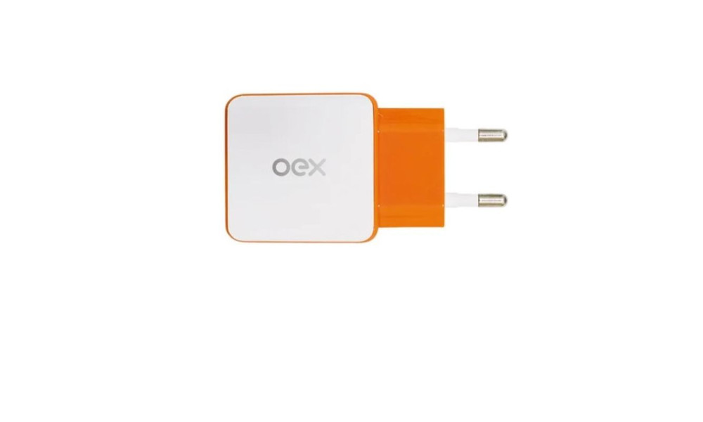 Carregador De Tomada 2 Entradas Usb Oex Cg201 Laranja