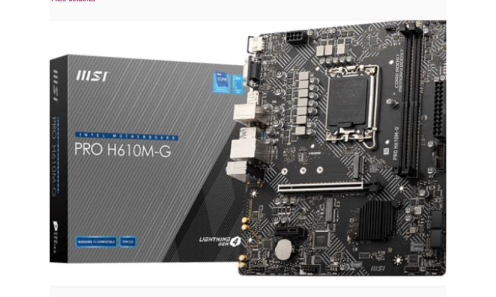 Marca: MSI Part Number: PRO H610M - G DDR5 EAN: 4719072942663 Largura (bruto) [m]: 0.25 Profundidade (bruto) [m]: 0.06 Peso (bruto) [Kg]: 0..